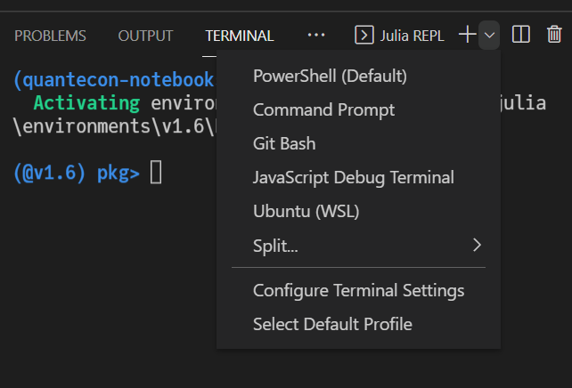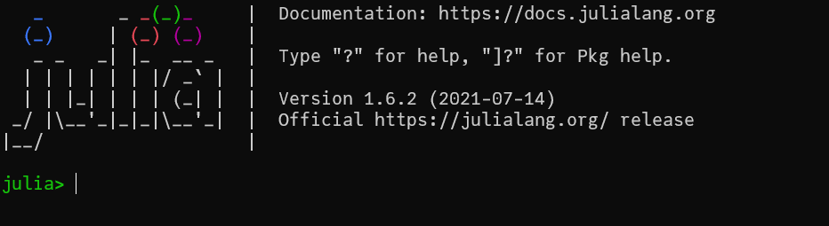 As entering of the package mode is so common in these notes, we will denote this with a ] IJulia, etc. On Windows and in Jupyter, you can directly copy this into your terminal, whereas on Linux and macOS you may need to manually enter the package mode.