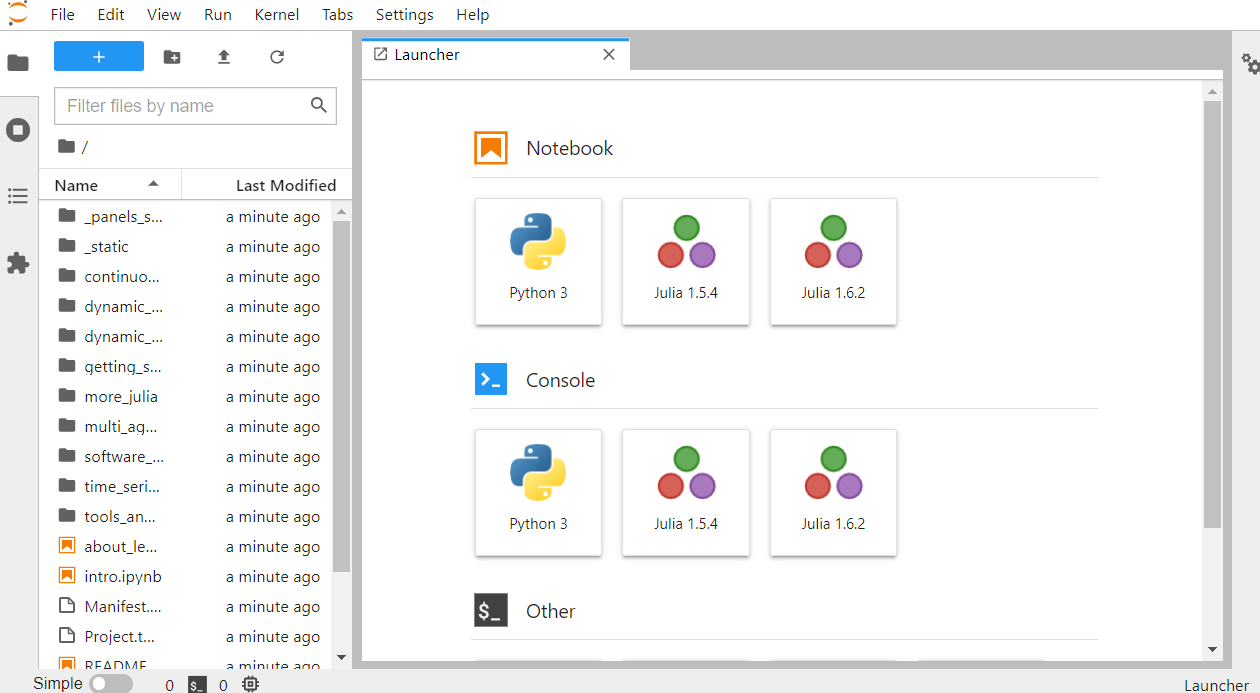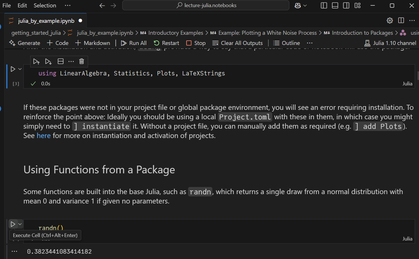 Next, we’ll start examining different features of the Julia and Jupyter environments.