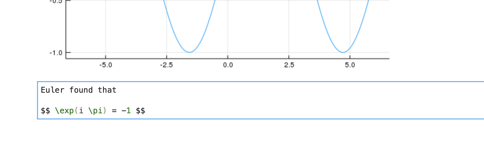 For example, here we enter a mixture of plain text and LaTeX instead of code