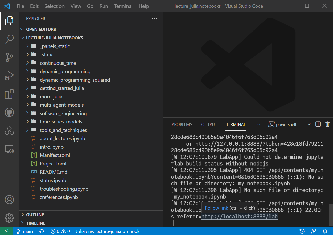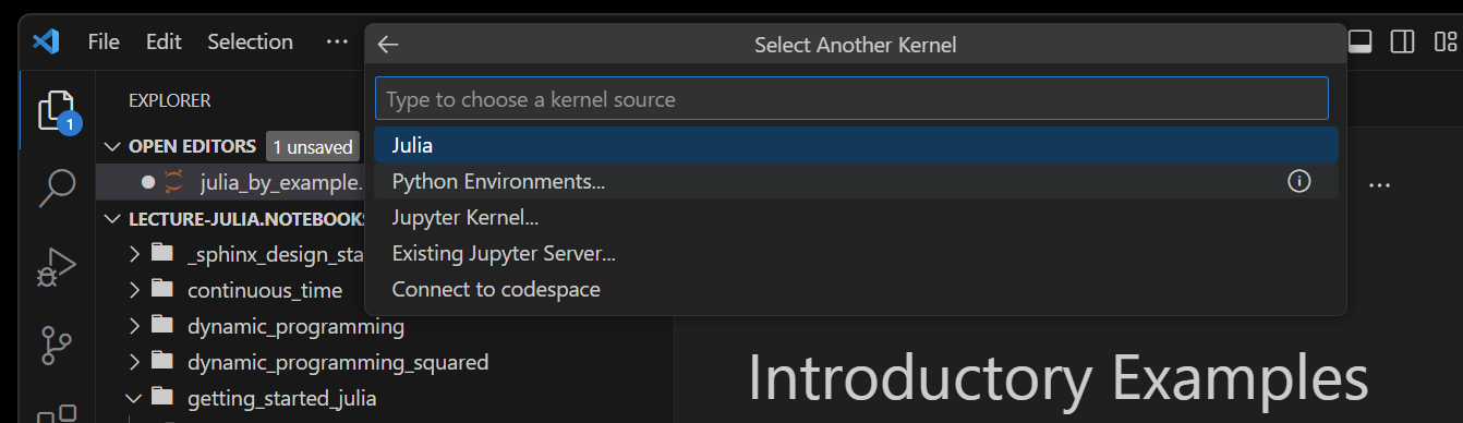 cdto that location in your terminal withcd lecture-julia.notebooksFinally, you can open this directory from your terminal in VS Code with